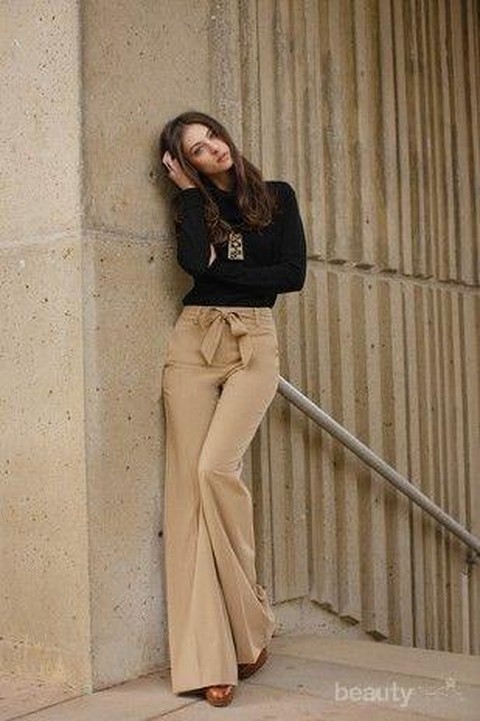 Daripada kamu memilih flare pants dengan bahan flowy, coba deh kamu pilih flare pants dengan bahan yang agak kaku agar tampilanmu terlihat rapih dan formal. Selain itu, coba juga kamu cari bahan yang tidak mudah kusut karena tentu aktivitas kamu di kantor membuat kamu banyak bergerak. Tentu kamu tidak ingin tampilan kamu terlihat berantakan, kan? Tampilanmu pun akan terlihat clean-cut alias rapih dan oke banget untuk ke kantor.