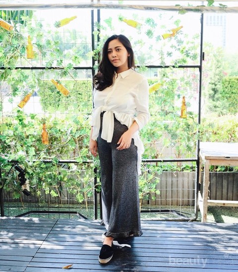 Si cantik yang saat ini sedang mengandung anak pertamanya ini memiliki style fashion yang selalu up to date. Meskipun sedang hamil, Rachel tetap tampil modis dengan padu padan wide leg pants dipadukan dengan blouse asimetris berdetail ruffle. Cantik, ya!