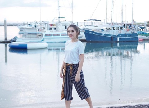 Make up artist cantik yang sekarang ini tinggal di Los Angeles, USA, ini juga memiliki style modis untuk padu padan wide leg pants kekinian. Vinna tampil dengan celana kulot yang disandingkan dengan atasan berkerah sabrina. Selain modis, Vinna juga terlihat lebih manis dan cantik, ya!