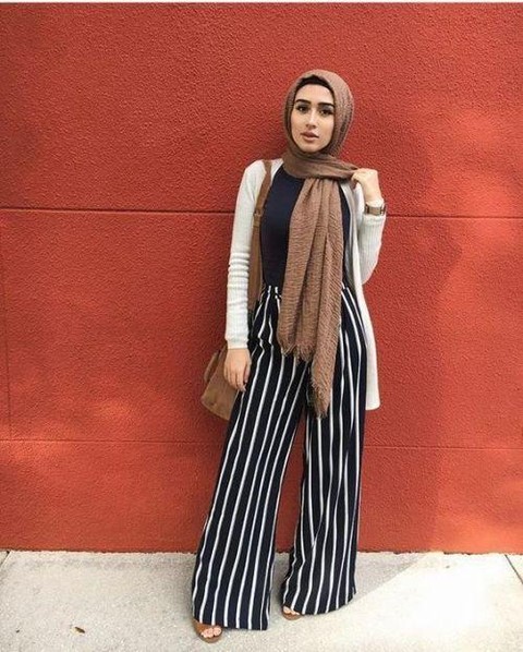 Untuk memberi kesan modern sekaligus vintage, padu padan hijab cokelat dengan motif stripe warna monochrome bisa jadi andalanmu. Kombinasi warna ini memang sangat serasi lho,simple tapi tetap stylish.