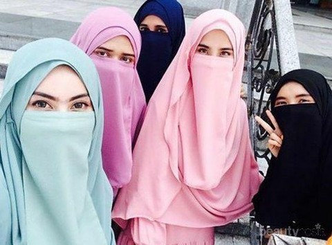 Foto: https://www.pinterest.com/pin/457396905888804414/Style niqab juga tidak kalah modis. Pilihan warna dengan layer yang manis pada hijab akan membuat kamu terlihat anggun dan cantik.