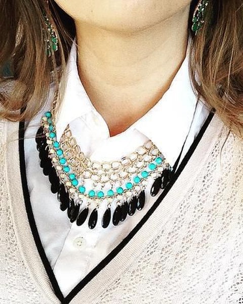 Sah-sah saja untuk menggunakan kalung besar yang melingkar pada kerah kemejamu. Be dare with big accesosries! Tapi kalau tak mau terlihat lebay, menggunakan choker dengan posisi liontin yang menggantung di area tenggorokan bisa jadi pilihan gayamu, kok.