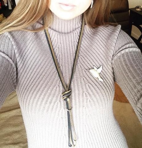Atasan turtle neck akan lebih seimbang dengan kalung panjang karena dapat memberikan ilusi leher terlihat lebih panjang. Selain itu, kalung panjang juga memberi kesan yang lebih elegan untuk outfit tersebut.
