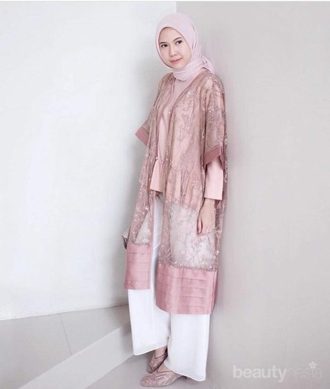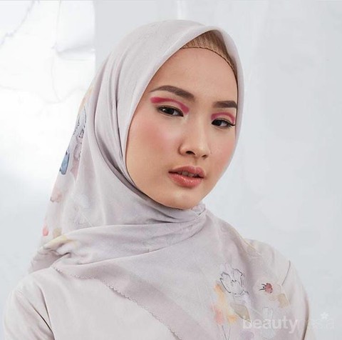 Foto: https://www.instagram.com/hijabenkaMasih dalam nuansa abu yang cocok untuk kulit kuning langsat. Kali ini pilihan hijab dengan motif. Bisa banget kamu padukan dengan twiggy eyes biar menarik.