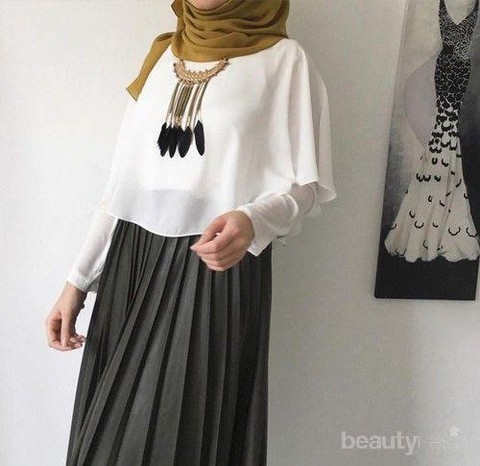Aksesoris hijab berikut bisa kamu aplikasikan ketika ingin memfokuskan penampilan pada atas busana. Kalung panjang biasanya berfokus pada bagian tengah, sehingga bentuknya akan lebih banyak di tengah. Padu padan kalung ini dengan blus yang polos berwarna netral.