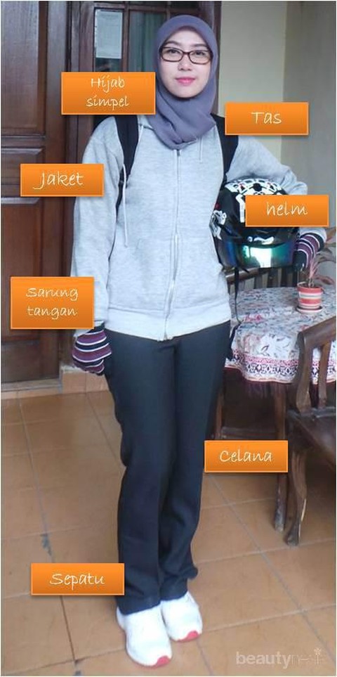 Gunakan jaket motor dan pastikan hijab masuk sempurna ke dalam jaket agar tidak berkibar-kibar di terpa angin. Selain itu, jaket bisa melindungi kulit dari sengatan panas matahari.