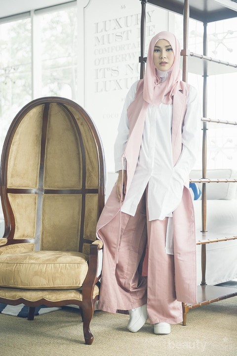 Celana palazzo dengan bentuk yang lebar juga cocok lho dipadu padankan dengan kemeja polos. Lihat saja gaya kerennya Zaskia Adya Mecca dalam memadu padankan celana palazzo yang super keren warna pink dengan kemeja putih polos, ditambah dengan vest dan sneakers semakin menyempurnakan penampilanmu.