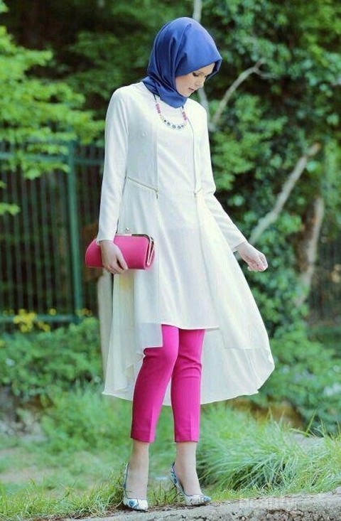 Blue and pink memang warna yang sangat bersahabat jika dipadankan dengan outfit yang kita pakai. Gaya hijab feminin ini bisa jadi inspirasi style ke pesta kamu lho. Sempurnakan lagi dengan tambahan aksesoris seperti earring hijab atau necklace dengan warna yang senada.