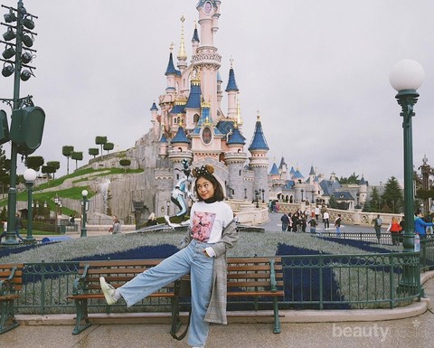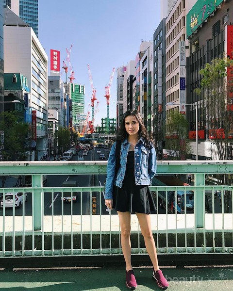 Tampil kasual saat traveling dengan perpaduan mini skirt dan denim jaket yang disandingkan dengan sneakers. Gaya Noi Aswari ini bisa banget untuk kamu contek jadi gaya liburan kamu nanti!