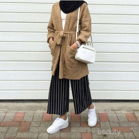 Selain itu, tampilan ini bisa kamu gunakan untuk berbagai tampilan mulai dari kasual hingga formal. Tidak perlu repot-repot menambahkan fahsion item dalam tampilan ini, karena perpaduan warna senada dalam baju muslim ini sudah mencuri cukup perhatian Dengan mengenakan sepatu berwarna putih, sebenanrya kamu menyeimbangkan warna dalam tampilan kamu, lho!