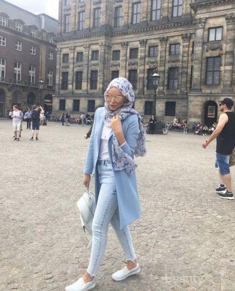 Saat kamu tidak ada ide ingin mengenakan tampilan seperti apa, coba gunakan monchrome look pada tampilan kamu! Kenakan warna senada dalam tampilan hijab hingga bawahan kamu, ya! Perpaduan busana muslim dengan warna senada ini memberi kesan rapi dan juga modern, lho.
