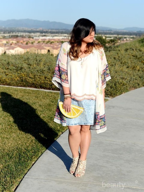 Nah, kurang lengkap bila tidak ada luaran untuk melengkapi penampilanmu. Minasan dapat menggunakan segala jenis outter, tetapi tidak yang terlalu tebal dan ketat. Outter seperti long cardigan atau kimono yang panjang akan memberi kesan ramping.