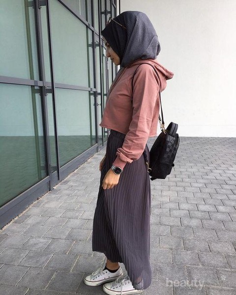 Hoodie memang fashion item yang dapat membuat tampilan kamu menjadi sedikit boyish. Namun, siapa bilag hoodie tidak dapat dipadukan dengan rok, fashion item yang dapat membuat tampilan kamu feminin? Yup, kamu bisa banget memadukan hoodie with skirt! Style hijab ini membuat tampilan kamu menjadi berbeda dari yang lainnya.