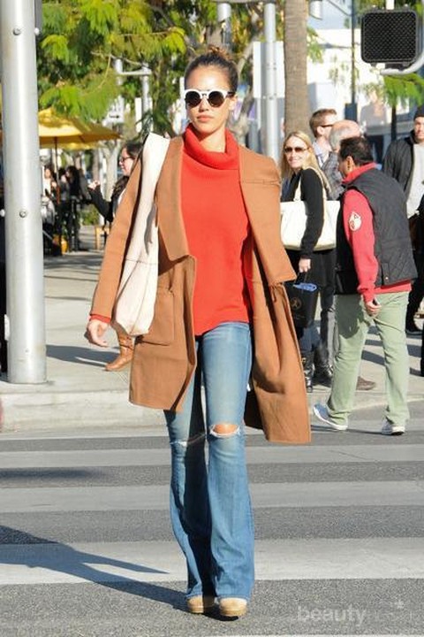 Foto: https://www.elle.com/fashion/personal-style/news/g27579/how-to-wear-a-turtleneck/?slide=32Hindari Turtleneck Berbahan Tebal dan Kaku
