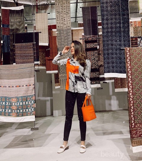 Outfit kampus ala Marsha Aruan yang bisa kamu tiru dengan menampilkan sisi modis nan kasual. Kamu bisa memadukan kemeja monochrome perpaduan warna hitam, putih, dan oranye dengan celana jeans warna hitam yang terlihat netral untuk dipakai atasan warna apa aja. Tambahkan flatshoes warna putih agar tampilan kamu makin sempurna dan memesona.