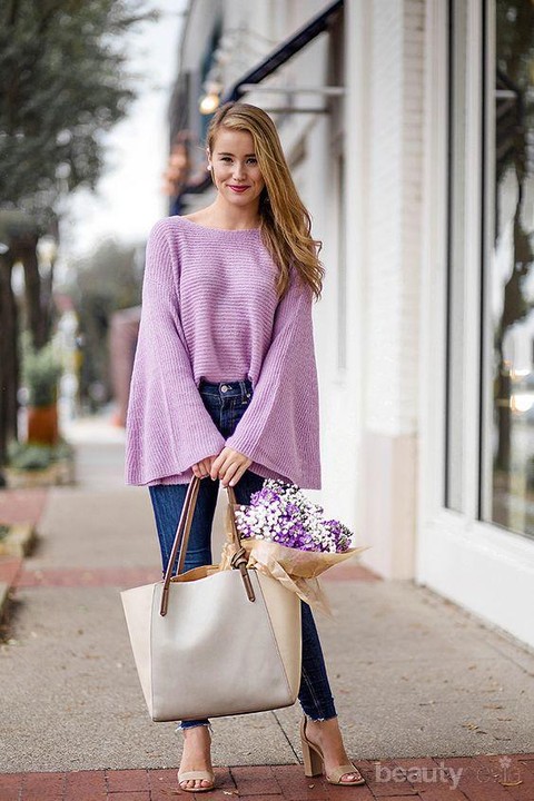 Bukan wanita namanya kalau nggak menyukai hal-hal yang berwarna lembut seperti lavender. Coba sesekali kenakan atasan berwarna lavender. Kamu pasti akan terlihat sangat manis. Padukan atasan lavender-mu dengan ankle strap block heels warna khaki dan tote bag berwarna senada dengan atasan atau block heels. Look ini bisa jadi andalan kamu saat berjalan-jalan di mall.