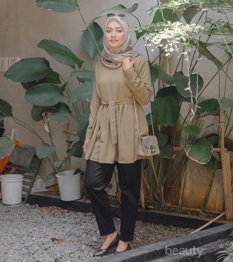 Selanjutnya celana wanita kekinian yang emang selalu wara-wiri di kalangan hijabers adalah celana chino. Nah, kayak yang dikenakan Mega di atas memadukan celana chino hitam dengan atasan coklat muda. Gak heran kalau disini perpaduan warnanya jadi yang paling menarik. Untuk perpaduan celana chino, ladies hijabers emang cocok buat milih atasan yang lebih panjang sehingga tampilannya manis dan saling melengkapi.