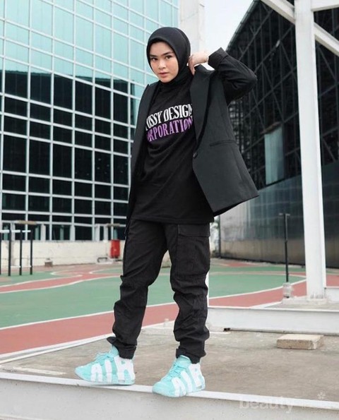Nah, yang terakhir adalah celana cargo. Ladies bisa padukan celana cargo warna hitam dengan atasan kaos dan blazer yang juga warna hitam. Nah, biar kelihatannya lebih kece, ladies bisa pakai kaos yang punya tulisan di bagian depannya. Ini dilakukan untuk mengimbangi setelah polosnya ya ladies. Biar tambah klop, tinggal kenakan sneakers warna cerah kayak Sivia Azizah ini nih.