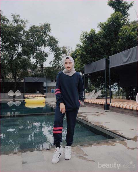 Tetap tampil kece saat olahraga emang selalu jadi pilihan para hijabers ladies. Kalau ladies suka bingung, inspirasi celana panjang wanita saat olahraga dari Nisa ini bisa banget ladies coba. Nisa milih buat setelan atas bawah yang sama dipadukan dengan hijab berwarna lebih terang. Enggak heran karena disini setelan atas dan bawahan Nisa udah lumayan