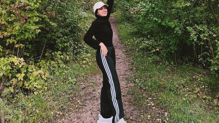 Jika kamu ingin berkunjung ke sebuah taman atau kebun, kamu bisa meniru outfit ala Ayudia Bing Slamet di atas. Perpaduan inner top berwarna hitam dengan celana olahraga berwarna senada akan membuat kamu merasa nyaman.