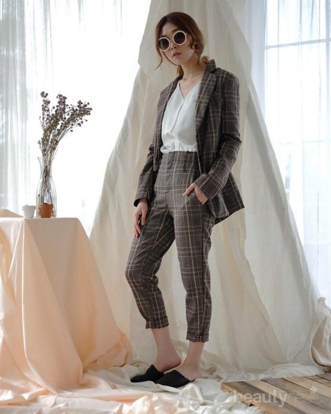Blazer polos hitam bisa terlihat sangat formal dan membosankan, dan cenderung kurang cocok untuk dipakai saat hang out. Biar temanmu enggak bingung dengan penampilanmu yang sangat formal, kamu bisa coba nih mengenakan setelan blazer dan celana kulot dengan motif kotak-kotak kecil seperti ini. Secara keseluruhan, setelan ini lebih terlihat tidak kaku dan keren dipakai saat meeting ataupun meet up di luar kantor!