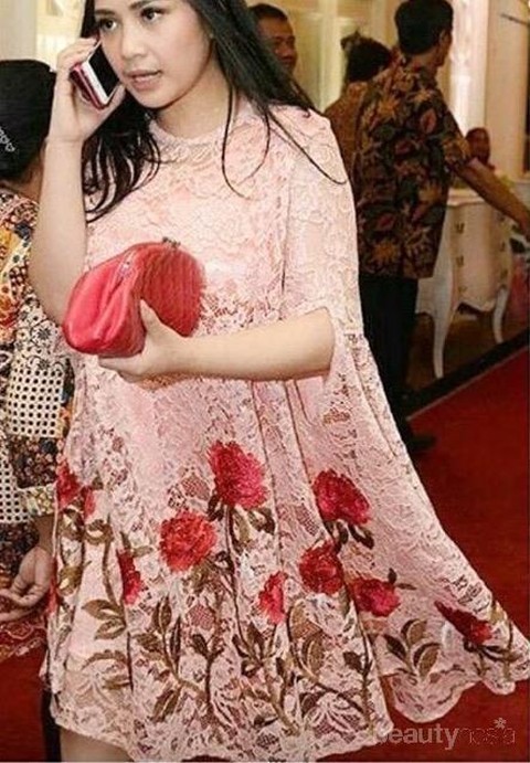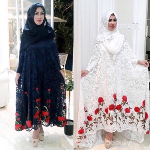 Model baju kaftan ala Nagita Slavina ini memiliki cut batwing yang membuatnya terlihat elegan, apalagi setelah dipakai oleh Nagita Slavina, semakin terlihat berkelas, ya ladies. Bahan brukat dan aksen bunga-bunga yang membingkai bagian bawah kaftan menjadikan busana ini semakin terlihat classy. Tidak heran kalau kaftan dengan desain yang cukup simple ini jadi tren di 2017.