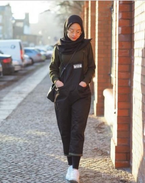 Kamu perlu memilih model overall hijab kekinian untuk gaya super chic. Model yang bisa kamu pilih adalah ruffle dress overall. Bentuk ruffle atau undakan pada bagian lengan bisa jadi sangat menarik saat dipadukan dengan aksesori pendukung. Misalnya, kamu bisa mengkombinasi dengan sepatu boots, topi, hingga sunglasses yang kece.