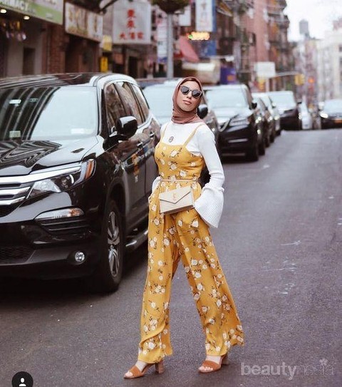 Liburan dengan jumpsuit? Mengapa tidak? Cobalah untuk memadukan jumpsuit kesayanganmu dengan motif bunga-bunga untuk gaya yang lebih ceria di hari-hari liburan. Kamu dapat menggunakan tank jumpsuit dengan inner berupa atasan berlengan lonceng. Tampilan ini manis banget untuk dipakai saat berjalan-jalan di kota atau bermain di pantai.