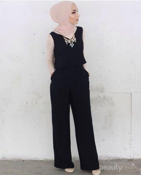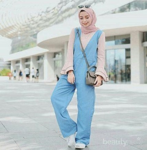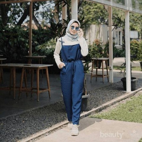 Selanjutnya, jumpsuit dengan model celana kulot dan atasan tali seperti tanktop juga bisa digunakan oleh kamu para hijabers. Kamu dapat mengombinasikannya dengan kemeja lengan panjang dan hijab segiempat kesayanganmu. Dijamin style ini cocok banget untuk dipakai saat pergi kuliah atau sekadar hangout dengan teman-teman.