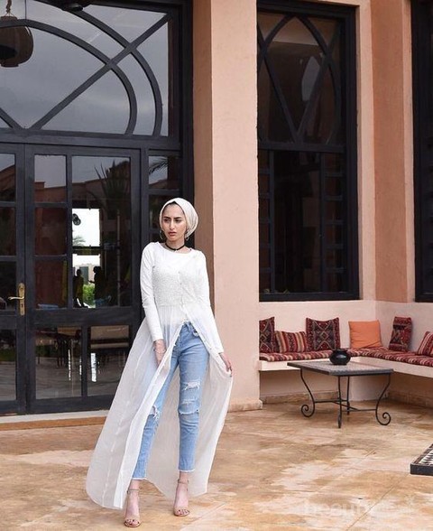 Untuk kamu yang ingin tampil santai dengan gaya fashion hijab minimalis dan anggun, style semi dress yang dipadukan dengan jeans ini sangat bisa kamu andalkan. Tampilan ini cukup manis dan cantik jika digunakan pada beberapa acara seperti arisan, reuni, hingga acara-acara buka puasa bersama di bulan Ramadan.
