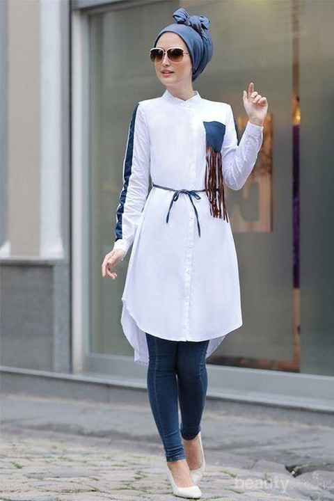 Tunik Putih untuk Gaya Hijab Minimalis Saat Hari Raya