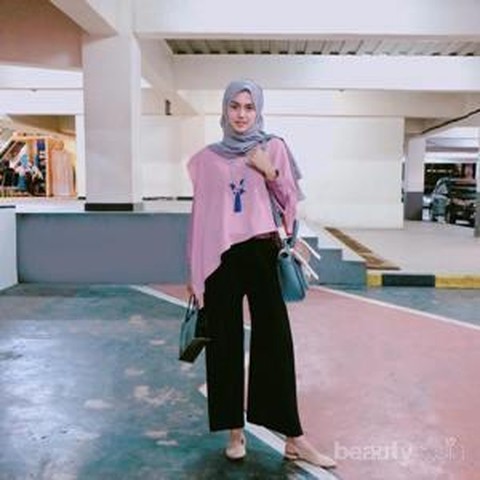 Padu Padan Warna Hijab Abu-abu dan Baju Pink