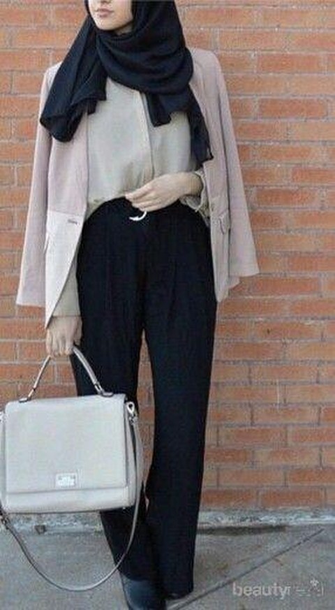 Untuk tampil elegan dengan style kulot hijab saat bekerja di kantor, kamu dapat memadukan celana kulot kamu dengan long coat. Long coat memberikan kesan formal dan profesional. Sangat cocok jika kamu gunakan saat kamu akan bertemu dengan klien atau presentas di depan atasan. Setelah itu, padukan lagi dengan kitten heels dengan warna lembut. Tampilan kulot kamu akan menjadi sangat modis.