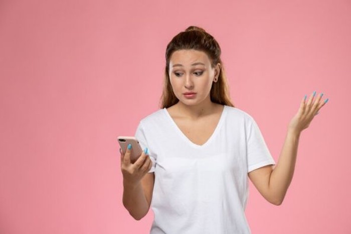 Ilustrasi perempuan melihat ponsel /Foto: Freepik/KamranAydinov