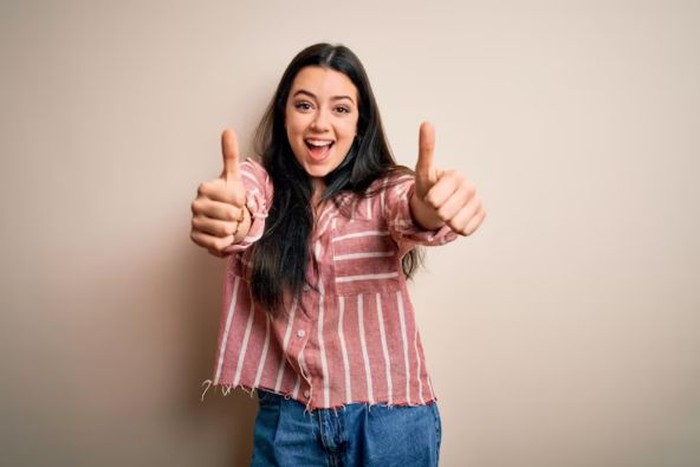 Ilustrasi perempuan mengacungkan kedua jempolnya /Foto: Freepik/krakenimages.com