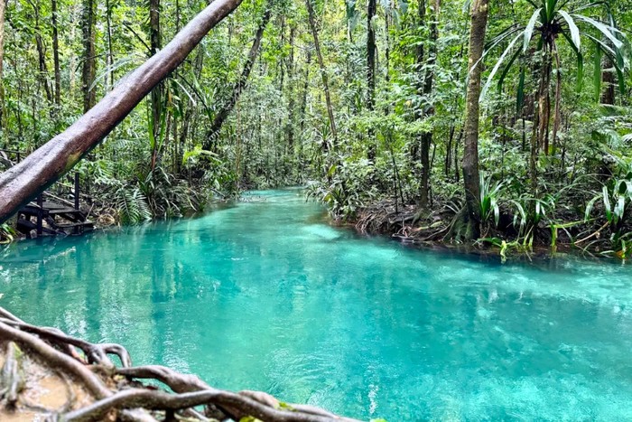 Keindahan Raja Ampat tidak hanya sebatas pada kekayaan bawah lautnya saja. Di balik hamparan laut biru dan pulau-pulau karst yang indah, terdapat destinasi hidden gem di tengah hutan Papua, yaitu Kali Biru.