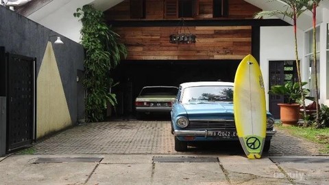 Foto: https://www.instagram.com/widimulia/?hl=idBagian depan rumah pasangan ini terlihat sangat mengesankan. Terlebih lagi adanya ornamen berupa roda bajak sawah bekas sebagai lampu hiasan. Ditambah lagi dengan kehadiran mobil jadul beserta papan selancar di depannya seakan membawa siapa saja yang melihatnya kembali ke masa lalu.