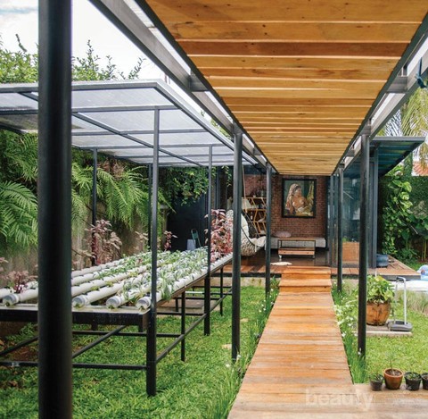 Foto: IstimewaMenambah kesan asri di tempat bersantai nya, tanaman hidroponik dipilih sebagai pelengkapnya. Terlihat ada enam pipa yang digunakan sebagai media tanam. Jalan menuju lokasi bersantai itu pun terbuat dari kayu.