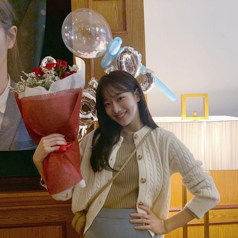 Foto: https://www.instagram.com/betterlee_0824/Disalah satu ungahannya Lee-Naeun tampak menghadiri sebuah pesta. Tidak perlu pakaian terbuka untuk terlihat cantik, cukup dengan memakai skirt abu-abu yang dipadukan dengan sweater dan cardigan rajut membuatnya tamppil youtfull dan cantik.
