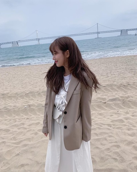 Foto: https://www.instagram.com/betterlee_0824/Outfit putih wajib banget kamu miliki di dalam lemari. Nah, kali ini Lee Na-eun tampil stylish dengan dress putih dipadu padankan dengan blazer oversize berwarna beige.