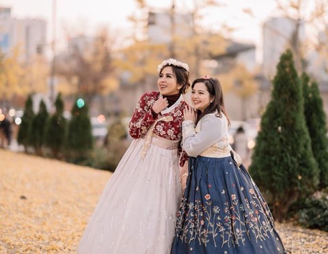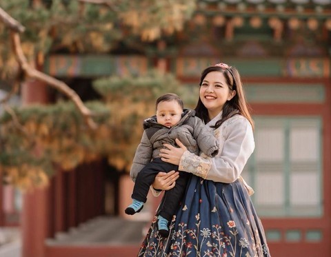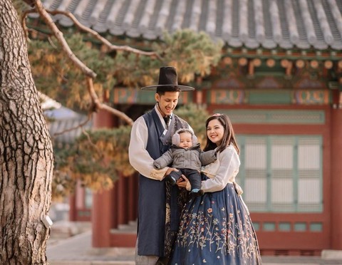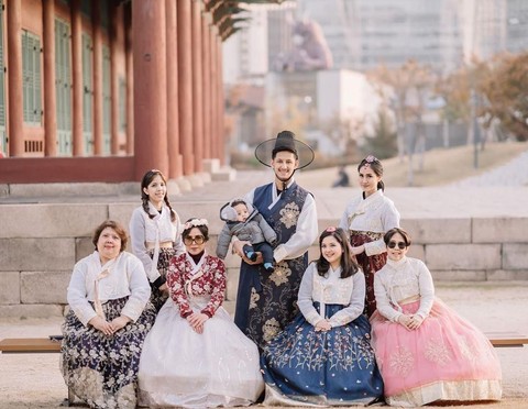 Seperti foto yang diunggah oleh Tasya di akun Instagramnya, tampak momen berlibur pun mereka begitu seru. Tak lupa mereka mengenakan pakaian tradisional Negeri Gingseng, Hanbok di alah satu lokasi andalan Korea dengan konsep zaman dulu.