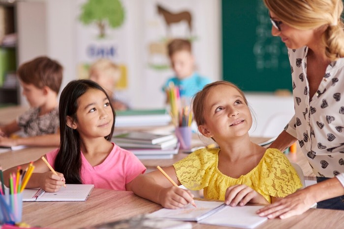 Ilustrasi guru dan siswa/Foto: Freepik.com/gpointstudio