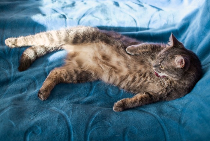 Kucing yang sering menyeret pantatnya di lantai biasanya merasakan gatal atau iritasi di area anus. The Spruce Pets menjelaskan bahwa cacing pita sering melepaskan segmen kecil yang mirip butiran nasi kering, dan potongan ini keluar melalui anus sehingga menimbulkan rasa tidak nyaman.