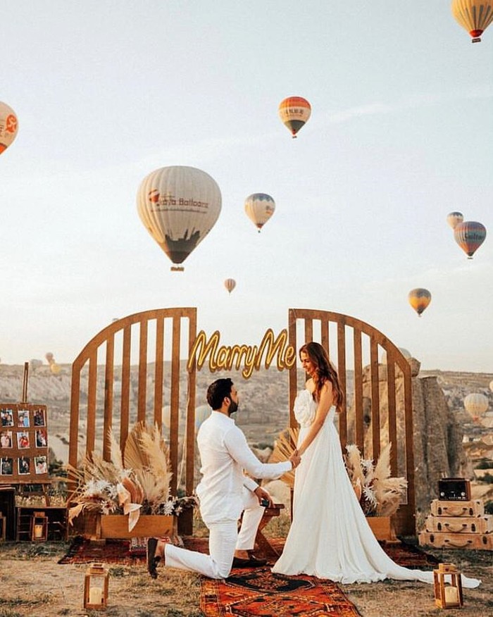 Salah satu pengalaman paling romantis di sana adalah naik balon udara saat matahari terbit. Kamu bisa melamar pujaan hati di atas balon udara maupun di pinggir lembah bebatuan dengan pemandangan langit cerah dan balon-balon udara yang sedang beterbangan.