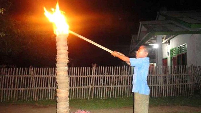 Masyarakat Bengkulu percaya bahwa api merupakan penghubung antara manusia dan leluhur. Tradisi ini biasanya dilaksanakan pada malam takbiran atau malam ke-27 di bulan Ramadan. Pelaksanaannya berjalan penuh hikmat, dibarengi dengan doa-doa yang dipanjatkan selama proses pembakaran batok kelapa.