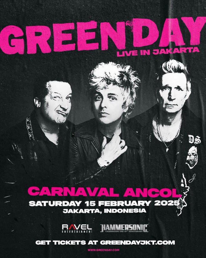 Band rock legendaris asal Amerika Serikat, Green Day, dijadwalkan akan menggelar konser di Carnaval Hall Ancol, Jakarta pada 15 Februari 2025.