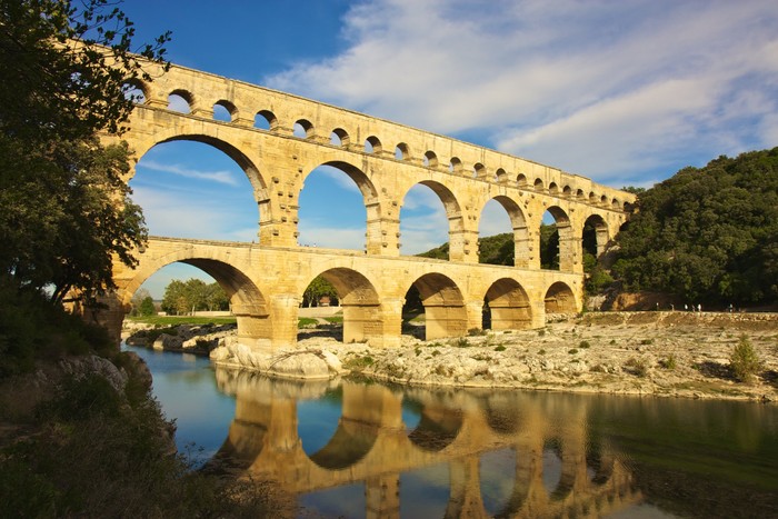 Lebih dari sekedar jembatan saluran air, Pont du Gard memiliki arsitektur yang menarik berupa lengkungan tiga tingkat yang dibangun tanpa menggunakan mortar atau semen.