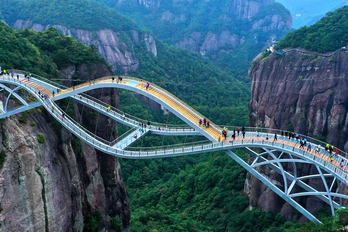 Selalu ramai dikunjungi wisatawan, Ruyi Bridge merupakan salah satu jembatan kaca dengan bentuk unik dengan desainnya yang tak biasa. Jembatan ini berdiri di atas ketinggian 140 meter dan membentang di Lembah Shenxianju.