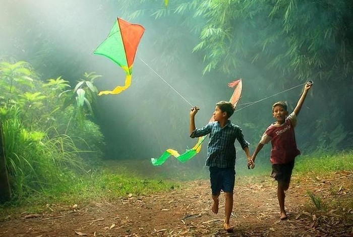 Bermain layang-layang bersama teman adalah salah satu cara perayaan/Foto: Pinterest/deviantart.com