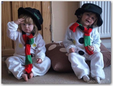 Foto: https://www.pinterest.com/pin/459085755735862525/Dua bocah lucu dalam balutan kostum snowman. Sempurna!